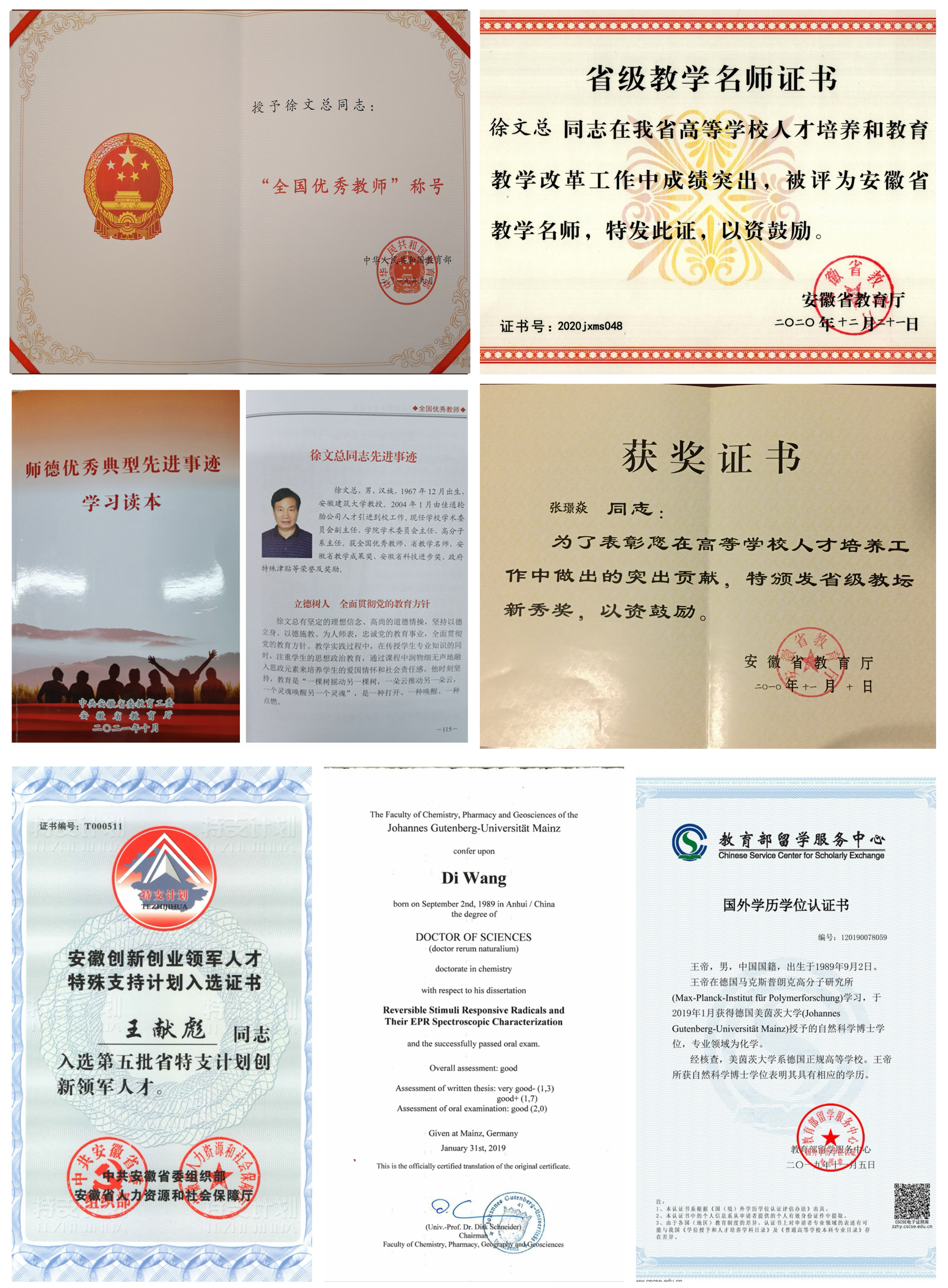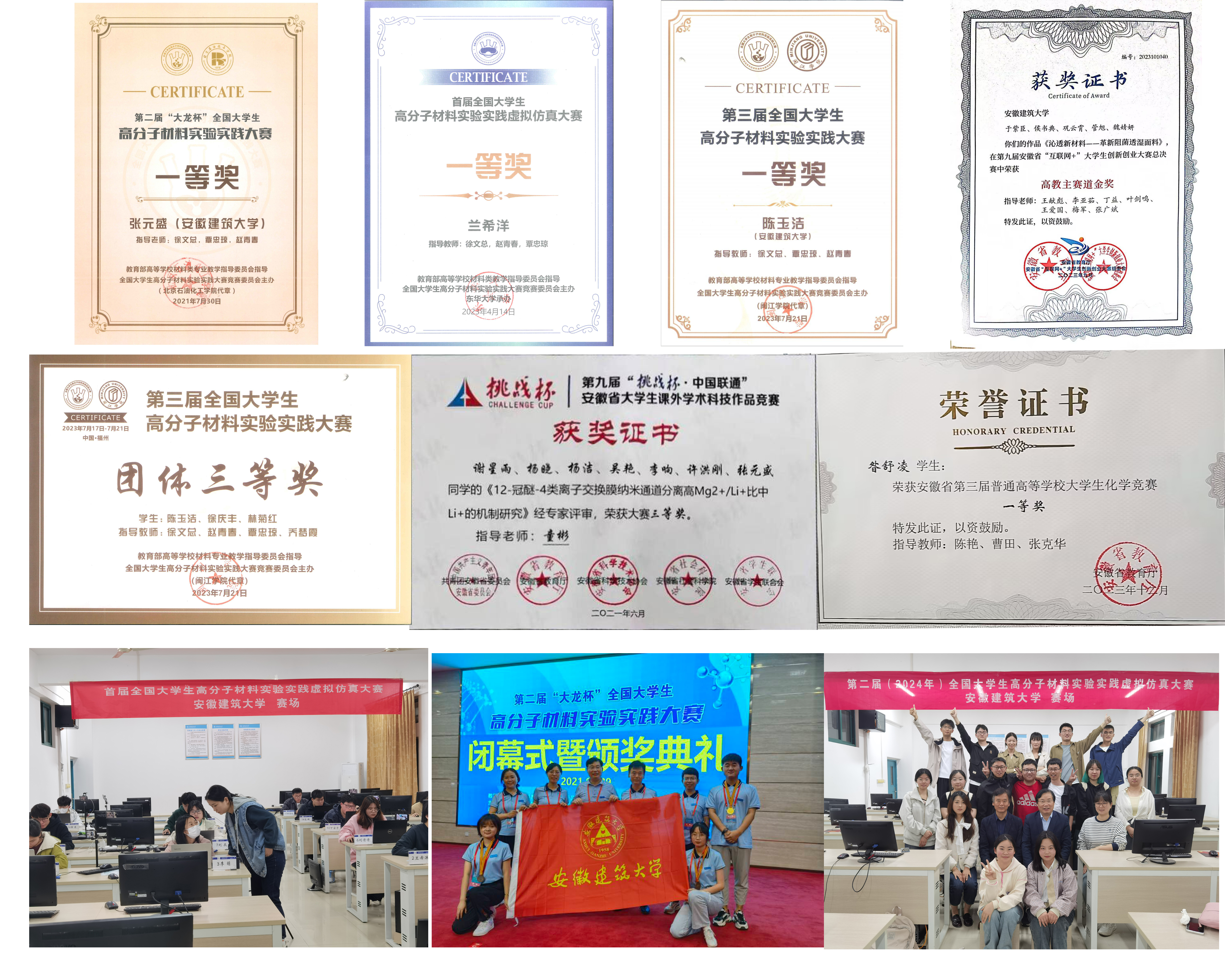 学生在全国及安徽省大赛中获奖