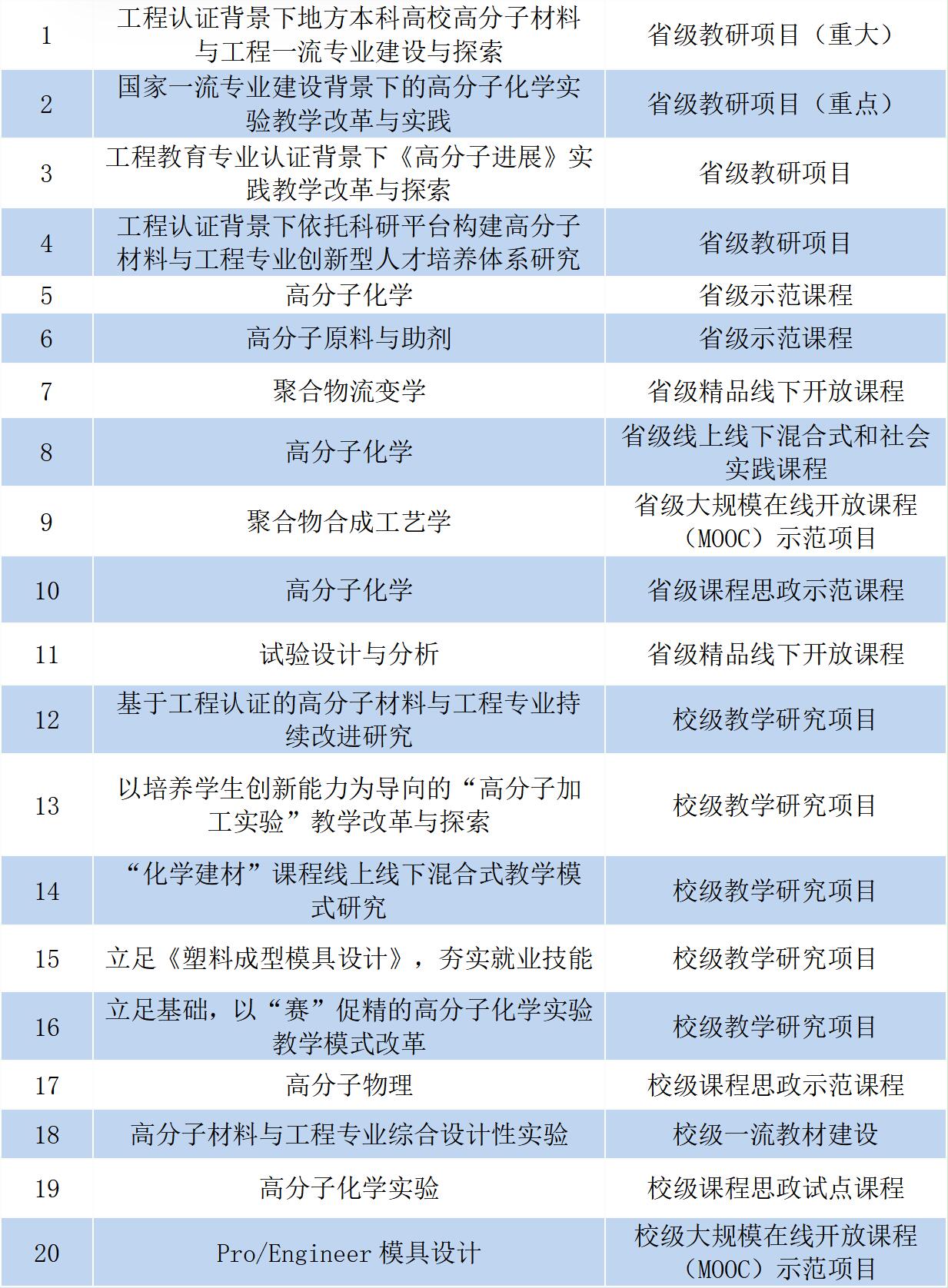 本专业现有专业教师18名,其中教授9人、副教授6人,分别占教师总人数的50%、33.3%;具有博士学位教师15人。“高分子材料与工程专业课程教学团队”2016年被评为省级教学团队、“高分子材料与工程系”2021年被确立为省级示范基层教学组织,同时获beat365亚洲体育官方网站“本科教学先进集体”称号。