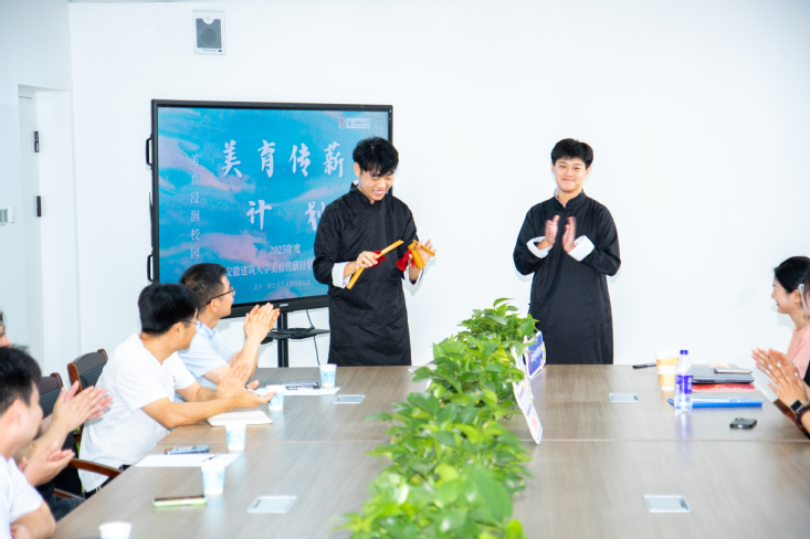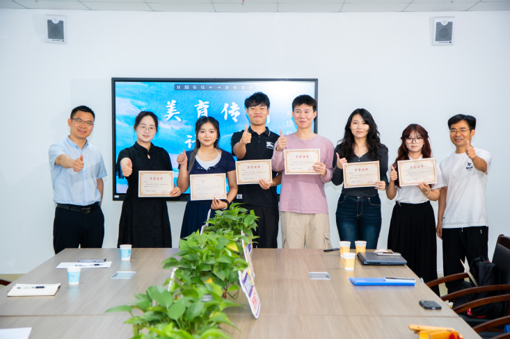 汇报结束由丁超老师、曹田老师共同为同学们颁发了“美育传薪计划”优秀证书,并合影留念。