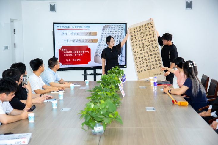 同时,科研人员与同学们热烈探讨,思维的火花在艺术与科技的碰撞中迸发,打破壁垒,实现人文与科技的跨界对话。科研人员也向同学们分享学校最新科研项目进展,点亮了同学们探索未知的明灯,大家携手并肩,共同为建筑大学的发展注入活力。
