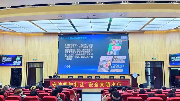 12月1日下午2:30,学校邀请合肥交警支队警察郑心月在南校区徽韵楼(原实训综合楼)2楼报告厅围绕校园交通实际开展交通安全知识宣传,学校各院师生代表及各部门安全员参与宣讲。