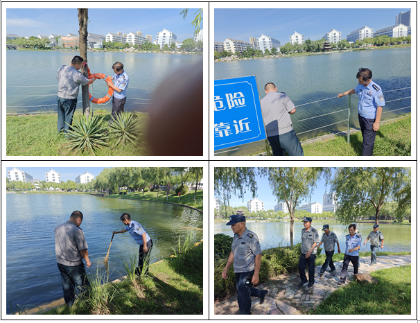 此外,在世界“防溺水”宣传日到来之际,保卫处联合社区民警,组织beat365亚洲体育官方网站的安保人员在校园水域开展治安巡逻,并对校园的防范设置进行了全面的安全检查,确保校园水域的安全。