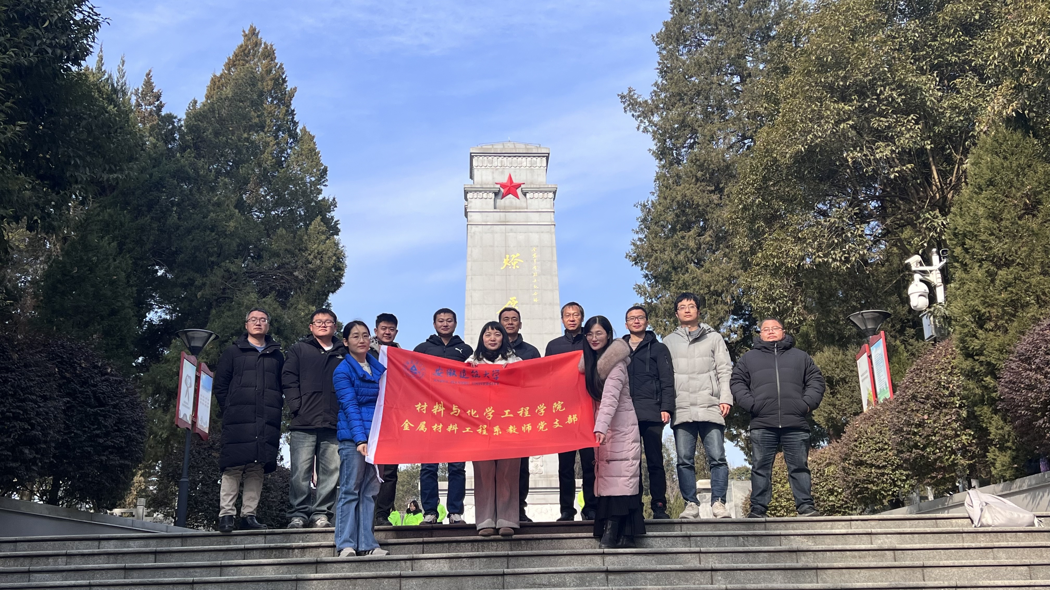 本网讯 为深入学习贯彻党的二十届三中全会精神和习近平总书记考察安徽重要讲话精神,强化党员党性修养,1月11日,材化学院金属材料工程系教师党支部赴金寨县红军广场开展了“瞻仰红军广场,缅怀先烈精神”主题党日活动。
