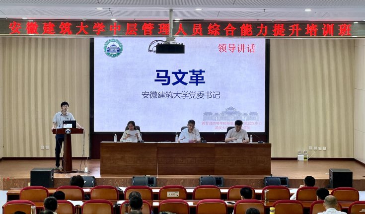 本网讯 为深入贯彻习近平新时代中国特色社会主义思想,认真学习贯彻党的二十大和二十届二中、三中全会精神,推动党纪学习教育走深走实,落实立德树人根本任务,着力打造一支“忠专实”“勤正廉”的干部队伍。7月17日至21日,学校在武汉大学举办中层干部综合能力提升培训班,校领导、学校中层干部及民主党派负责人124人参加培训班。校党委书记马文革,校党委副书记、校长黄显怀,武汉大学校务委员会副主任、原党委副书记赵雪梅出席开班仪式。