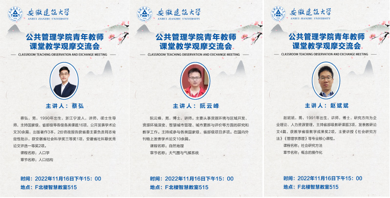 本网讯 为进一步提高青年教师教学水平,全面优化青年教师教学本领,公管学院11月16日在北校区F北楼515智慧教室举行了青年教师课堂教学比赛观摩交流会。国家级教学创新比赛二等奖获得者李璐老师、学院组织员李道先老师、学院副院长连瑞瑞老师担任点评专家,学院相关青年教师参与本次活动。