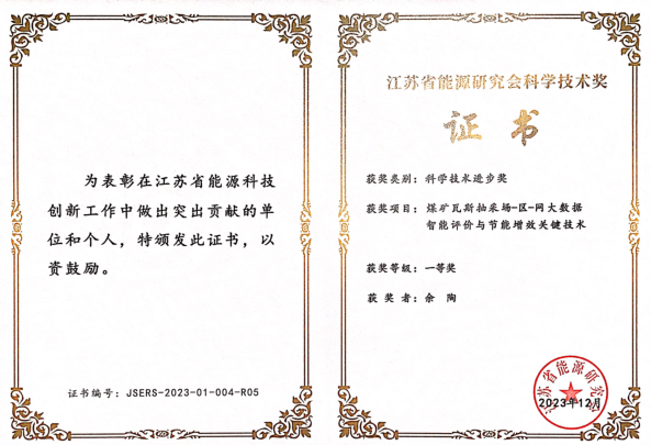 余陶老师荣获江苏省能源研究会科学技术奖一等奖