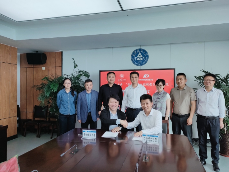 本网讯 4月28日,beat365亚洲体育官方网站和上海领电智能科技有限公司在紫云路校区徽风楼21楼第二会议室共同举行“智能一体化控制器及后台系统”捐赠仪式。上海领电智能科技有限公司董事长戚军武、上海领电智能科技有限公司市场总监谢运行、上海领电智能科技有限公司安徽分公司负责人季兵;校党委书记马文革、合作发展处、国有资产管理处、机电学院负责人以及校友在校期间的辅导员参加签约仪式。