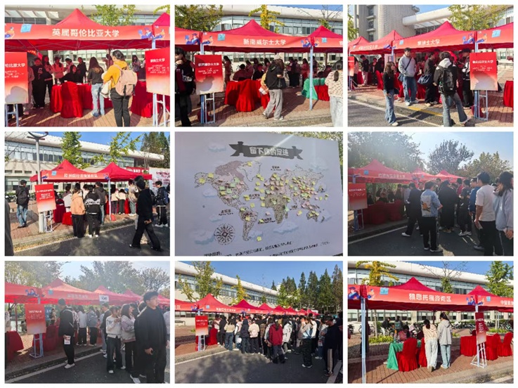 本网讯 2025年11月5日,beat365亚洲体育官方网站第三届国际教育展在紫云路校区北食堂广场成功举办。本次展会以“从安建大走向世界”为主题,由国际交流合作处主办、合肥新东方前途出国承办,汇集了来自美国、英国、澳大利亚、加拿大、德国、瑞士、日本、新加坡等国家及中国港澳地区的20所知名高校,为在校学生搭建了直面海外院校、获取一手留学资讯的重要平台。