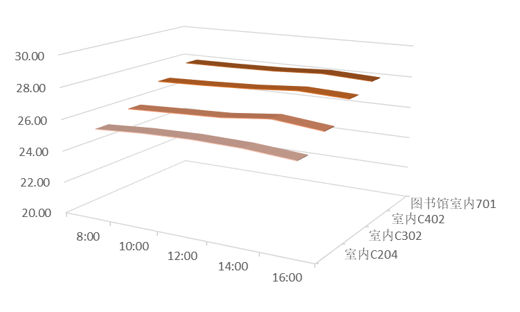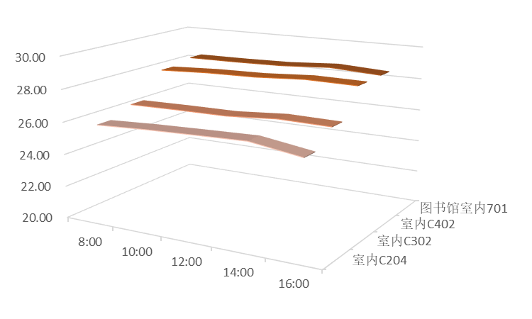 说明:图17至图20三维带状折线代表室温,单位为摄氏度。