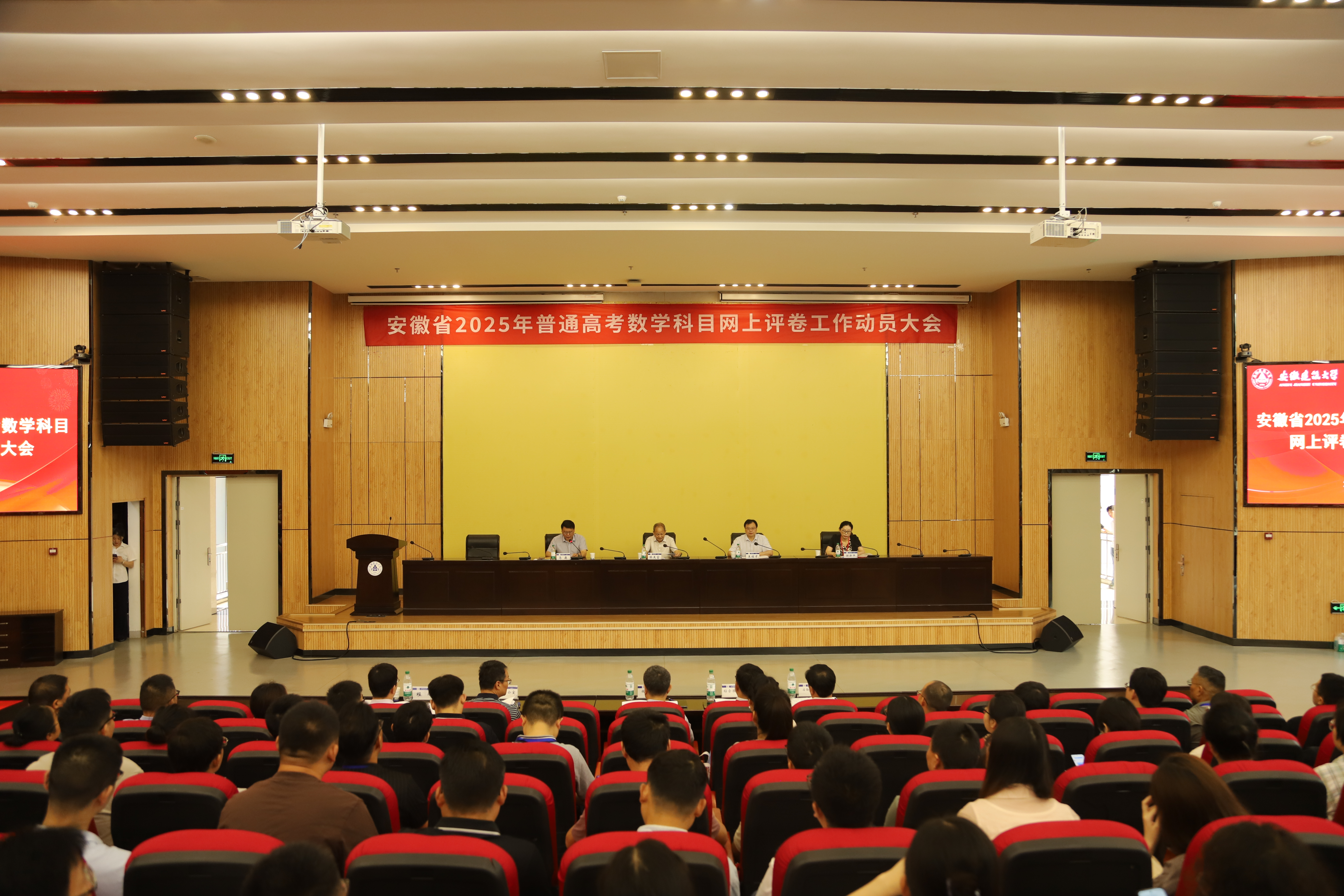 本网讯 6月12日,安徽省2025年高考数学科目网上评卷工作动员大会在beat365亚洲体育官方网站紫云路校区徽风楼二楼报告厅隆重举行。安徽省教育招生考试院副院长张连富、beat365亚洲体育官方网站党委常委、副校长王佐才出席会议,省考试院派驻评卷点联络员、学校网评工作领导组成员、相关工作组负责人和省内289所中学评卷教师近500人参会。