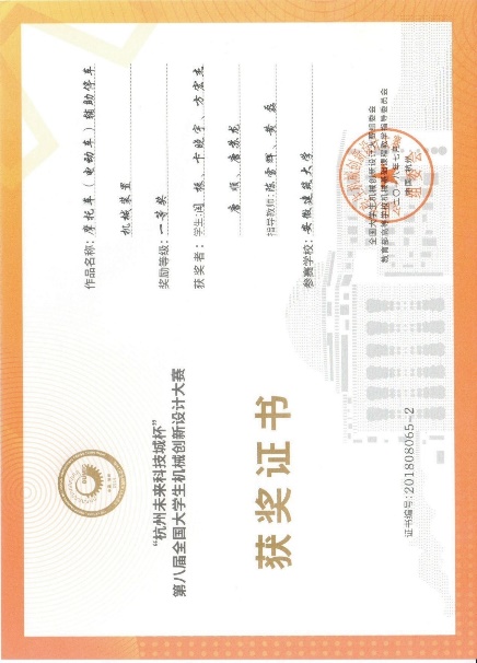 2008年以来,本专业学生在全国大学生机械创新设计大赛、全国大学生节能减排社会实践与科技竞赛、挑战杯、全国大学生工程训练综合能力竞赛、全国大学生过程装备实践与创新大赛、安徽省科普创新创意大赛等科技竞赛中获得省级以上奖项50余项。