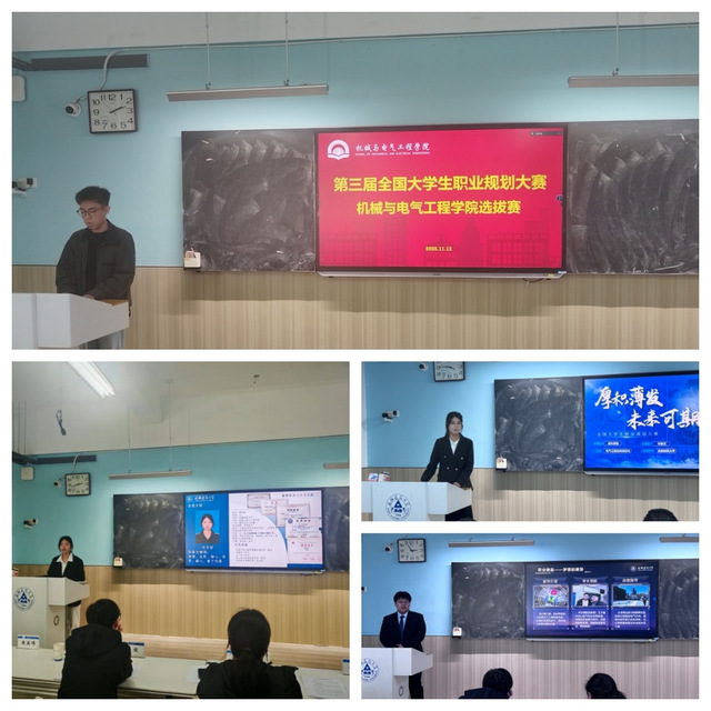 比赛中,选手们依次登台,围绕自我认知、职业探索、目标确立、路径实施与动态调整等维度展开阐述。他们结合专业特色与行业趋势,精准剖析个人优势与成长空间,展现出清晰的职业视野、扎实的专业素养和积极的进取姿态。经评委综合评审,大赛共评选出一等奖5名、二等奖9名、三等奖11名。其中,本科生成长赛道一等奖王宇康、许静文,本科生就业赛道一等奖沈心蕊,研究生就业赛道一等奖张含笑、罗凯强五位同学推荐代表学院晋级校级半决赛。