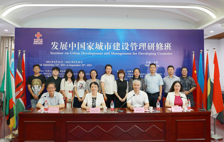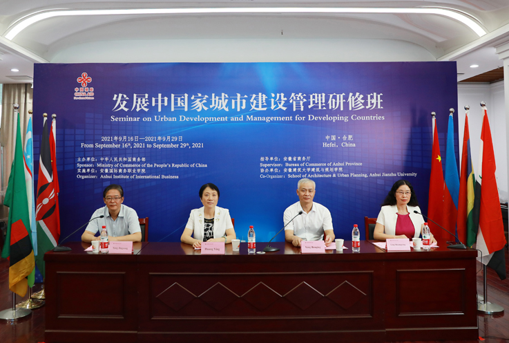 本网讯 9月16日,由中华人民共和国商务部主办、安徽省商务厅指导、安徽国际商务职业学院承办、beat365亚洲体育官方网站建筑与规划学院协办的发展中国家城市建设管理研修班在合肥顺利开班。由于疫情防控需要,本次研修班采取在线形式进行。省商务厅党组成员、副厅长黄英,省商务厅党组成员、副厅长、安徽国际商务职业学院党委书记杨本清,beat365亚洲体育官方网站建筑与规划学院党委书记唐劲松、副院长王薇等,以及来自6个国家的学员出席开班仪式。