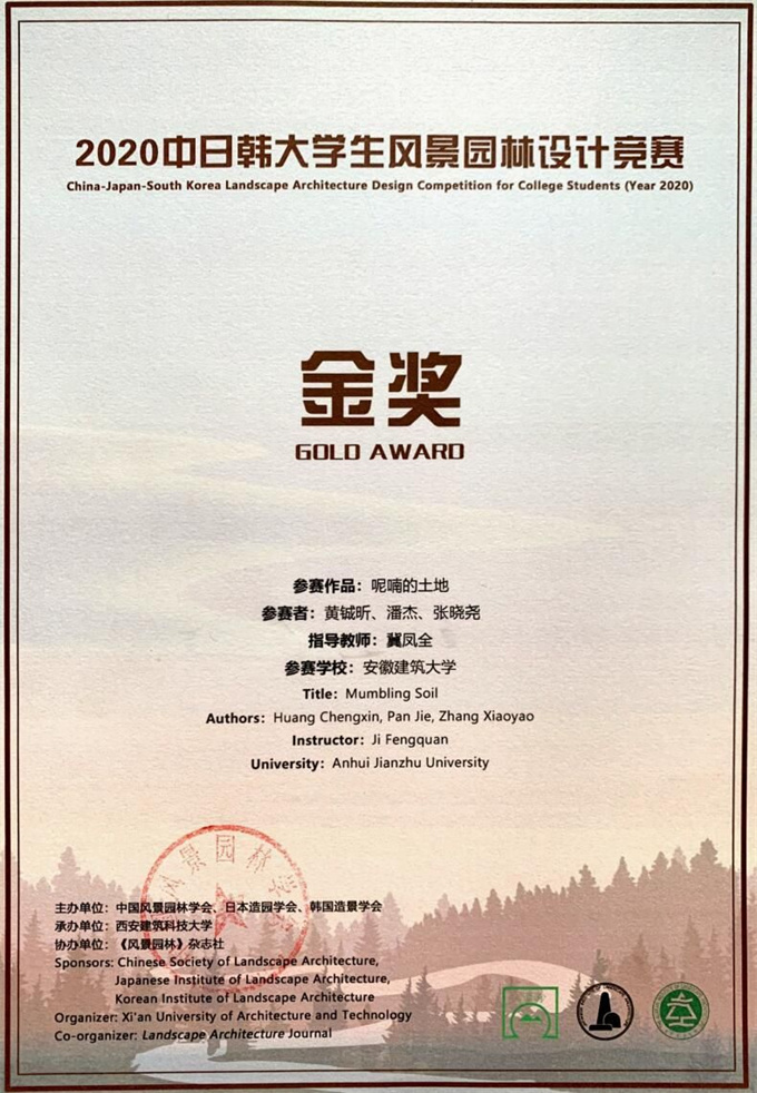 本次竞赛主题为“生活在遗产之中——城市河流自然与文化的风景价值”,组委会共收到325份参赛作品,经过初评和终评专家严格评选,共有18份参赛作品脱颖而出,诞生金奖1名,银奖2名,铜奖4名,提名奖10名,入围奖1名,最佳人气奖1名,竞赛反响热烈。由我院冀凤全教授指导,风景园林研究生黄铖昕、潘杰、张晓尧共同完成的作品《MUMBLING SOIL》荣获金奖。