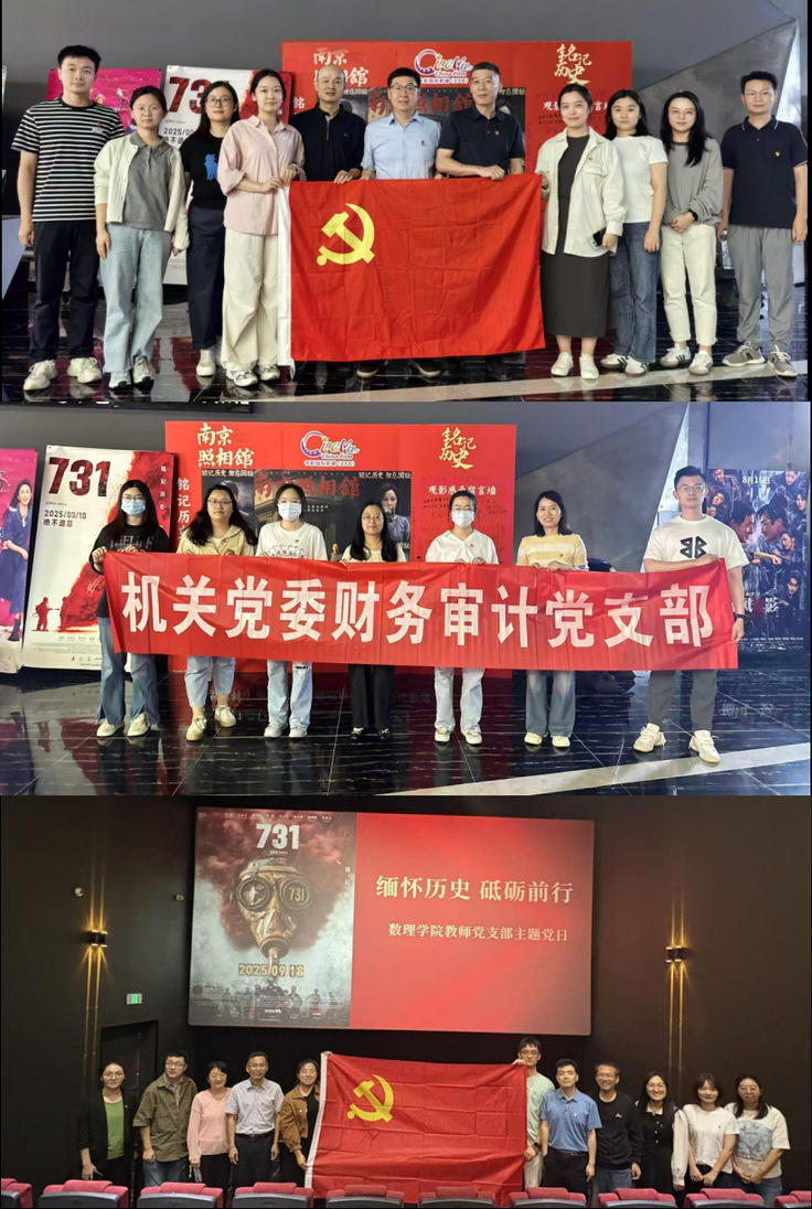 本网讯 为进一步推进党史学习教育常态化长效化,促进党建工作经验交流,9月18日至19日,机关党委人事处党支部、财务审计党支部与数理学院应用物理系教师党支部联合开展“铭记历史 砥砺前行”党建共建活动,通过观影与座谈相结合的形式,引导党员同志厚植爱国情怀、凝聚奋进力量。