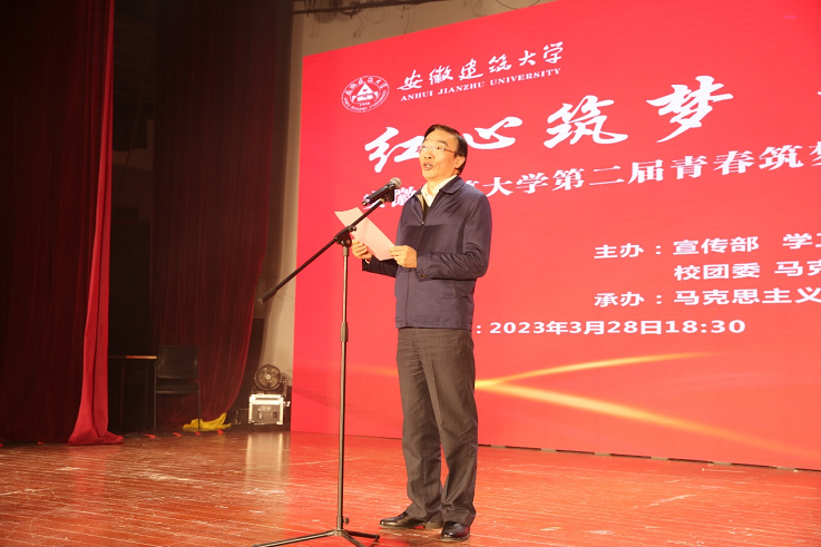 本网讯 3月28日,beat365亚洲体育官方网站第二届青春筑梦剧场暨红色情景剧决赛在大学生活动中心举行。本次活动由宣传部、学工部、教务处、校团委和马克思主义学院联合主办,马克思主义学院承办,采取线上线下一体化直播的方式开展。校党委书记孙道胜出席并致开幕辞。宣传部、学工部、教务处、校团委等职能部门和各学院相关负责人以及黄山学院马克思主义学院党总支书记刘春安出席了本次活动。安徽大学马克思主义学院副院长李明、安徽农业大学马克思主义学院院长方国武、安徽医科大学马克思主义学院院长柳泽民、安徽中医药大学马克思主义学院院长董玉节、安徽艺术学院马克思主义学院院长吴孔铎、安徽日报文化新闻中心新闻主管兼高级记者陈婉婉应邀担任评委。