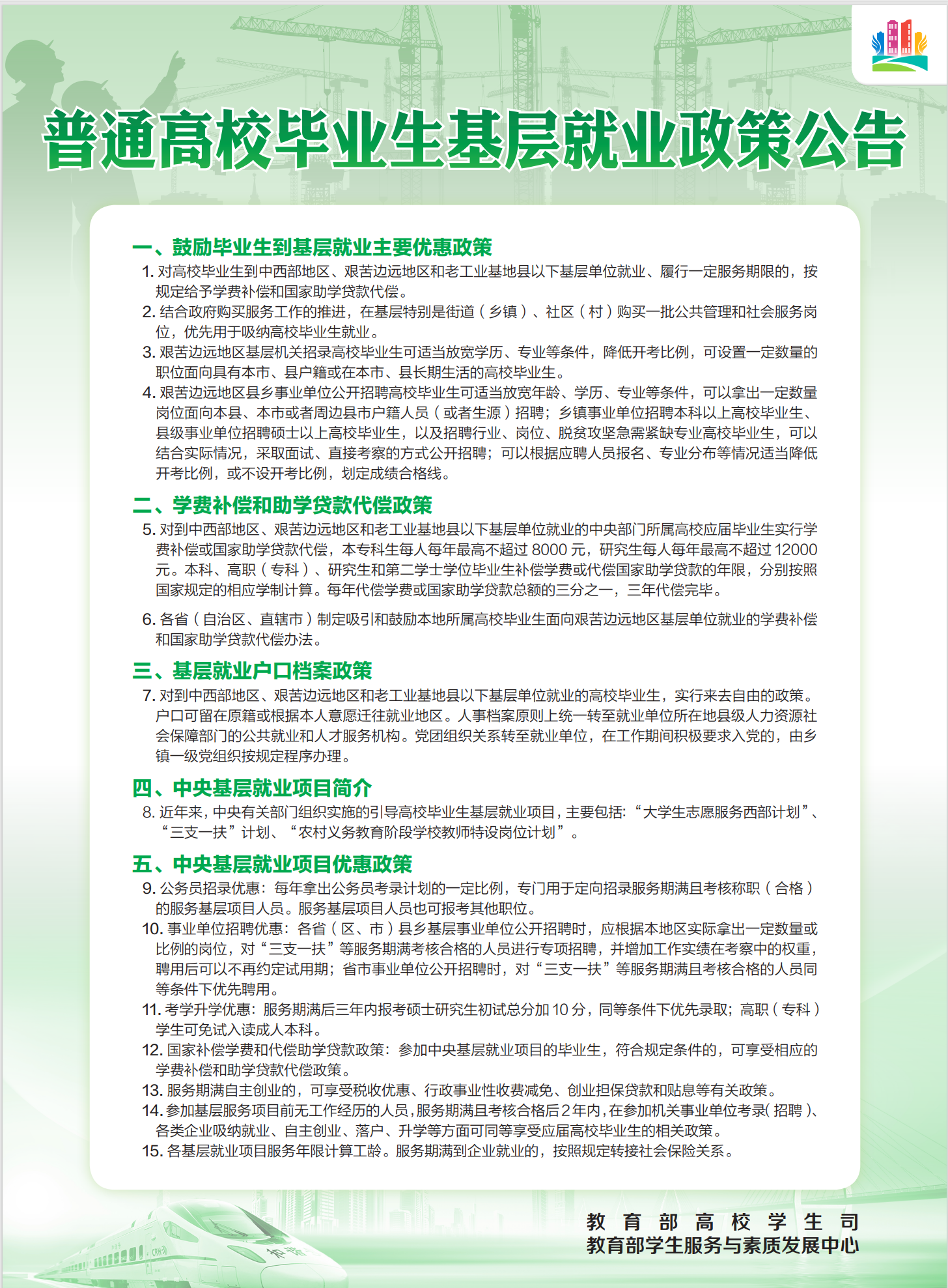 普通高校毕业生基层就业政策公告