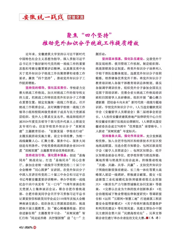 安徽统一战线:聚焦“四个坚持” 推动党外知识分子统战工作提质增效