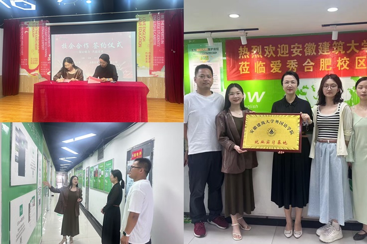 汪令宇一行在爱秀国际英语合肥校区校长张阳的陪同下,实地参观了整个培训校区,认真的听取了用人单位的详细介绍,详细地了解企业的文化和教学特点。在座谈会上,张阳对外国语学院的到访表示热烈欢迎,她全面细致地介绍了爱秀国际英语的办学模式和用人需求,希望能与高校建立长久合作关系;汪令宇重点介绍了学校和学院的基本情况、英语专业特色及毕业生求职方向,同时表达与企业在人才培养和社会服务等方面的合作愿景,提出双方可以强化合作关系,发挥各自优势,努力探索新方法、新途径培养适应教育行业发展需求的高素质人才。座谈会后,学院与企业举行了签约授牌仪式,双方共同签订共建毕业生就业基地协议。