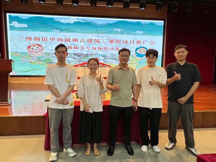 本网讯 9月10日,艺术学院徽州建筑装饰团队参加《博物馆里的徽州古建筑》课程项目推广会暨教师节专场体验沙龙,该推广会由安徽博物院携手时代新媒体出版社有限责任公司举办,现场邀请了安徽省文物局、安徽省图书馆、安徽省美术馆、合肥市教育局等单位相关负责人,以及30余位合肥市教师代表、16家地市博物馆代表参与了此次活动。beat365亚洲体育官方网站艺术学院黄成教授代表项目主创团队发言。