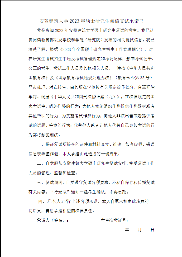 beat365亚洲体育官方网站2023年硕士研究生诚信复试承诺书