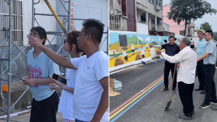 此次实践活动共完成3面墙体的墙绘工作,面积逾200平方米,墙绘作品不仅为乡村“美颜”,更成为连接高校师生和乡村群众的情感纽带。“看着大学生们一笔一画勾勒出的画面,我们也跟着重温了初心。”舒城县千人桥镇五里桥村党支部书记方根生表示,这些墙绘不仅美化了村容村貌,更增强了党员群众的凝聚力,如今路过的村民都会驻足停留,这里成了村里最热闹的“打卡点”。