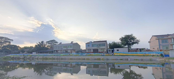 实践团队紧扣“党建引领乡村振兴”主线,杨芳老师精心设计主题墙绘板块,以生动形象的方式展现让党的政策和乡村发展面貌。村中主干道旁,一幅约120米长的《乡村振兴新画卷》格外醒目。画面里,金黄的稻田在阳光下熠熠生辉,稻浪翻滚间,人们丰收的喜悦与整洁的民居实景交融,生动展现出党的政策为乡村带来的巨大变化。