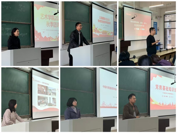 院党委副书记任磊聚焦“以强国复兴为己任,争做党的助手和后备军”主题,深刻阐释团员青年的责任定位与时代使命鼓励大家坚定理想信念,挺膺担当,奋力谱写强国复兴的青春篇章校团委岳琦老师围绕“青春跟党走,建功新时代”,结合艺术专业特色,号召团员将艺术追求与时代发展同频共振。学院团委书记孙长玥以“实践育人筑牢信念根基”为切入点,引导同学们在实践中锤炼品格、坚定信仰;辅导员管皓宇聚焦“新生团员启航”,助力新同学快速融入组织、明确成长方向;辅导员袁婧卓带领同学们回顾“中国共青团的百年奋斗历程和历史启示”,从百年征程中汲取奋进力量;辅导员施林坡以“坚持党旗所指就是团旗所向”为题,强调团员青年应紧跟党的步伐,自觉听从党和人民召唤,努力建功立业