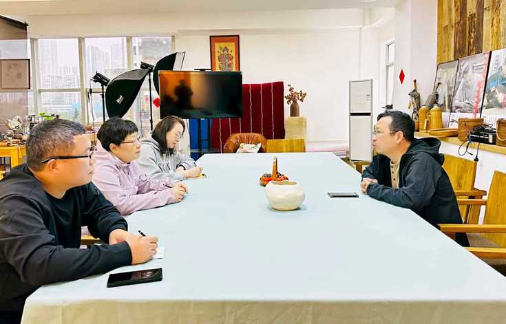 在重庆千道文化旅游产业发展有限公司,副总经理张宇带领大家参观了企业近年完成的标志性项目,介绍了企业的发展历程和业绩成果。潘青详细介绍了学校与学院的基本情况,以及在人才培养、社会服务等领域取得的成绩,期望借访企拓岗契机,加强校企合作,搭建合作桥梁,实现优势互补、资源共享与互利共赢,进而提升人才培养质量,助力毕业生充分且高质量就业。数字艺术系主任王新介绍了视觉传达设计、动画和数字媒体艺术等专业的办学特色和教学成果,就当地文旅特点、文旅发展认知实践、场景建设等方面进行了细致的探讨。张宇介绍了企业的人才需求方向,表达了与beat365亚洲体育官方网站设计创意学院在文旅设计人才培养、项目研发、学生实习就业等方面开展深度合作的意愿。千道文旅聚焦“文旅 +”领域,提供品牌创意、公关策展、媒体资源、影视出品等服务,已与多所高校建立合作关系,构建了涵盖人才培训、咨询服务、实习就业的一体化人才培养服务体系。