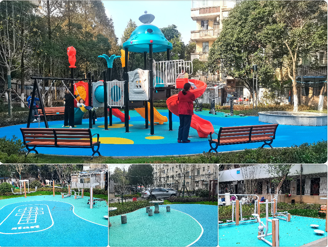 功能提升:改造还在提升居民生活品质上下足功夫。更新绿化面积4410平方米,新种玉兰、金桂等苗木64株,编织绿意盎然画卷;修整改造7#南侧及18#北侧休闲广场,新建幼儿游乐设施1处,增设健身器材、休闲座椅及文化宣传栏,构筑休闲娱乐新境;清理私搭乱建、硬化闲置地块,从楼栋边角“抠”出152个停车位,预留充电桩接口,方便居民日常出行;此外,为切实解决离退休教职工“上下难”的生活难题,国资处(基建办)、后勤管理处协调各方,最终确定由居民自愿集体出资购买电梯设备,施工单位预留好相关基坑、套管。目前,14#-18#教职工宿舍电梯陆续安装中,电梯“一键直达”,居民幸福感直“升”!