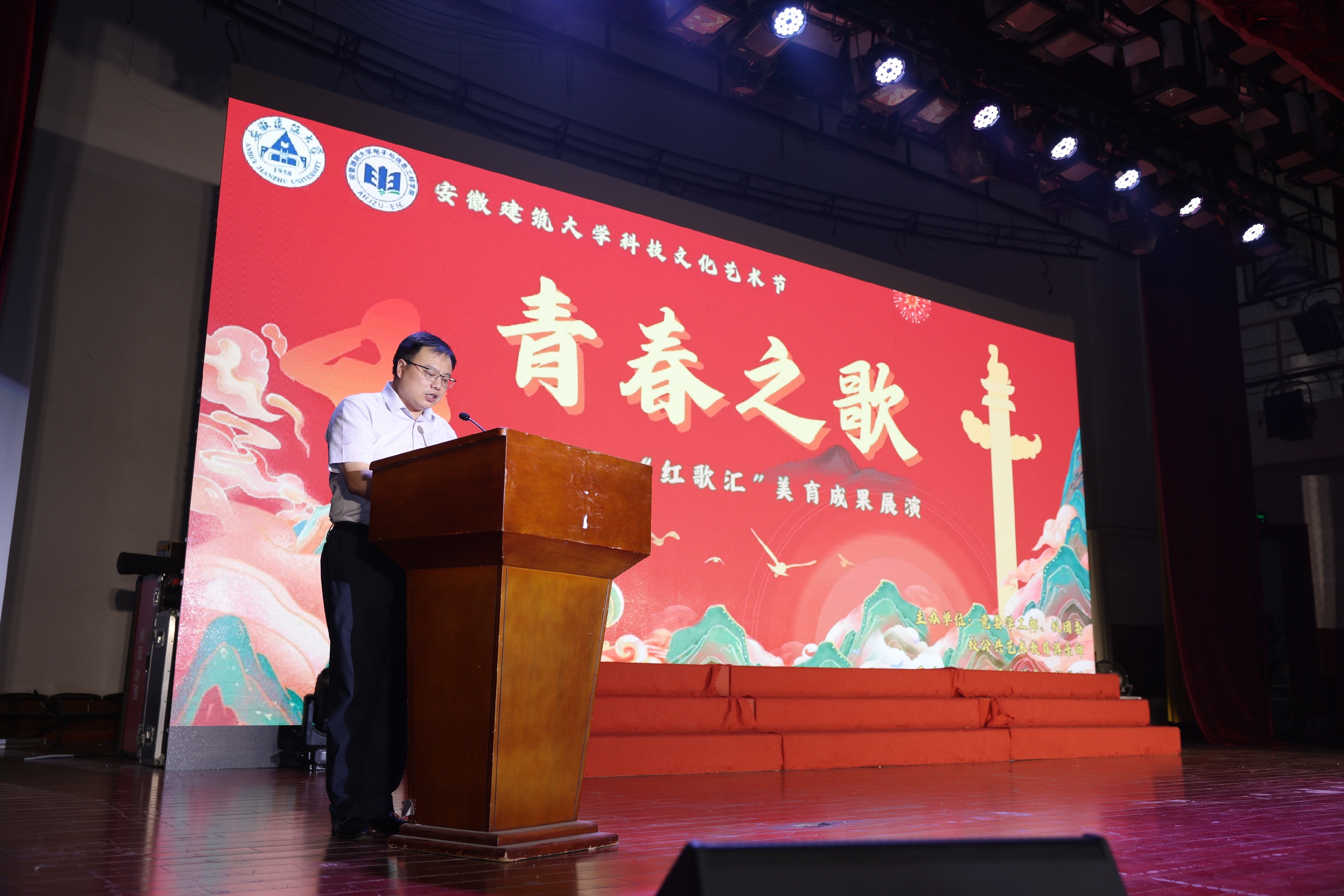 王佐才深入安徽建筑大学科技文化艺术节“红歌汇” 美育成果展演活动现场,指出此次“红歌汇” 美育成果展演不仅是一场视听盛宴,更展现了学校在美育方面的突出成果,既丰富了校园文化生活,也为学生搭建了展示自我的优质平台。