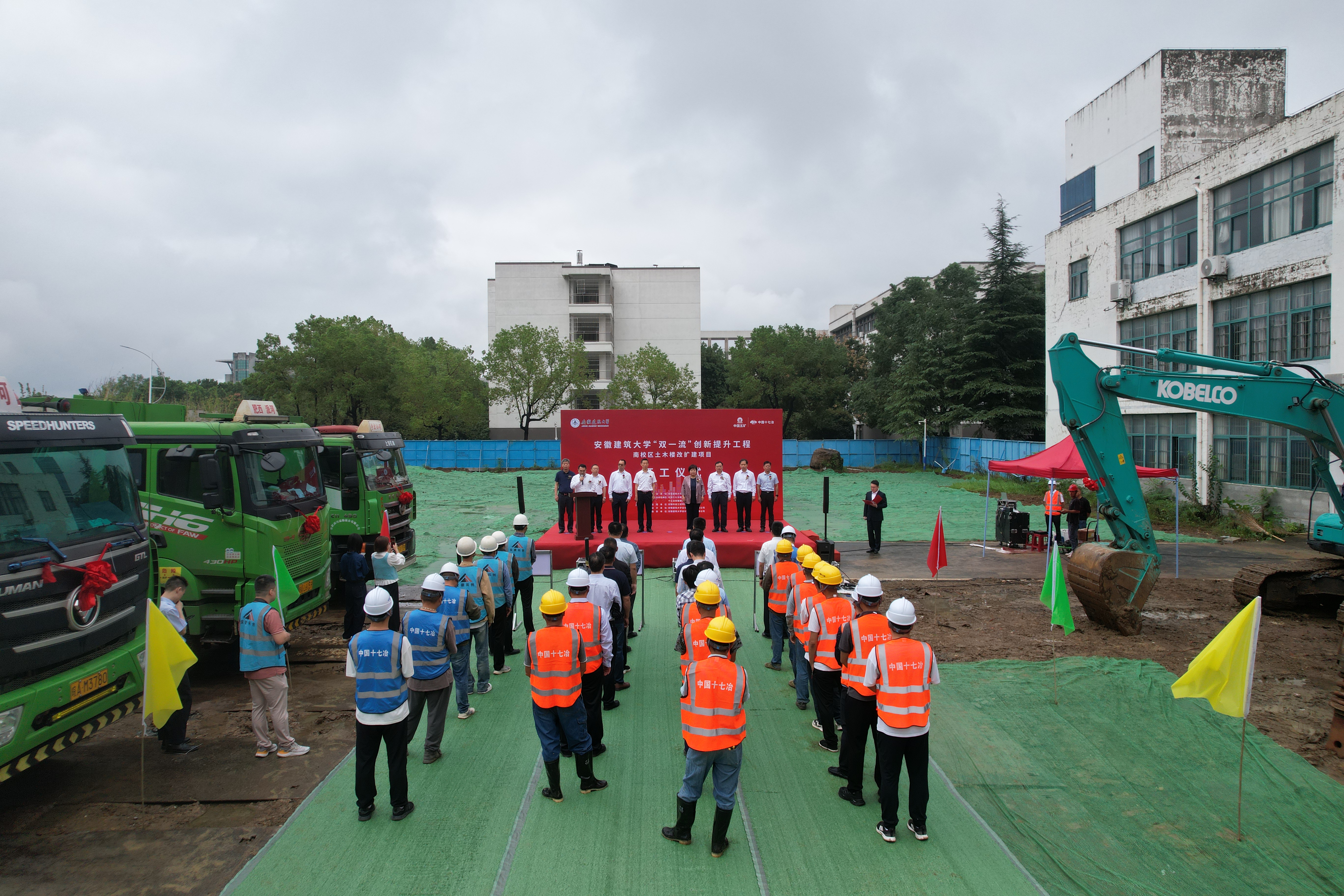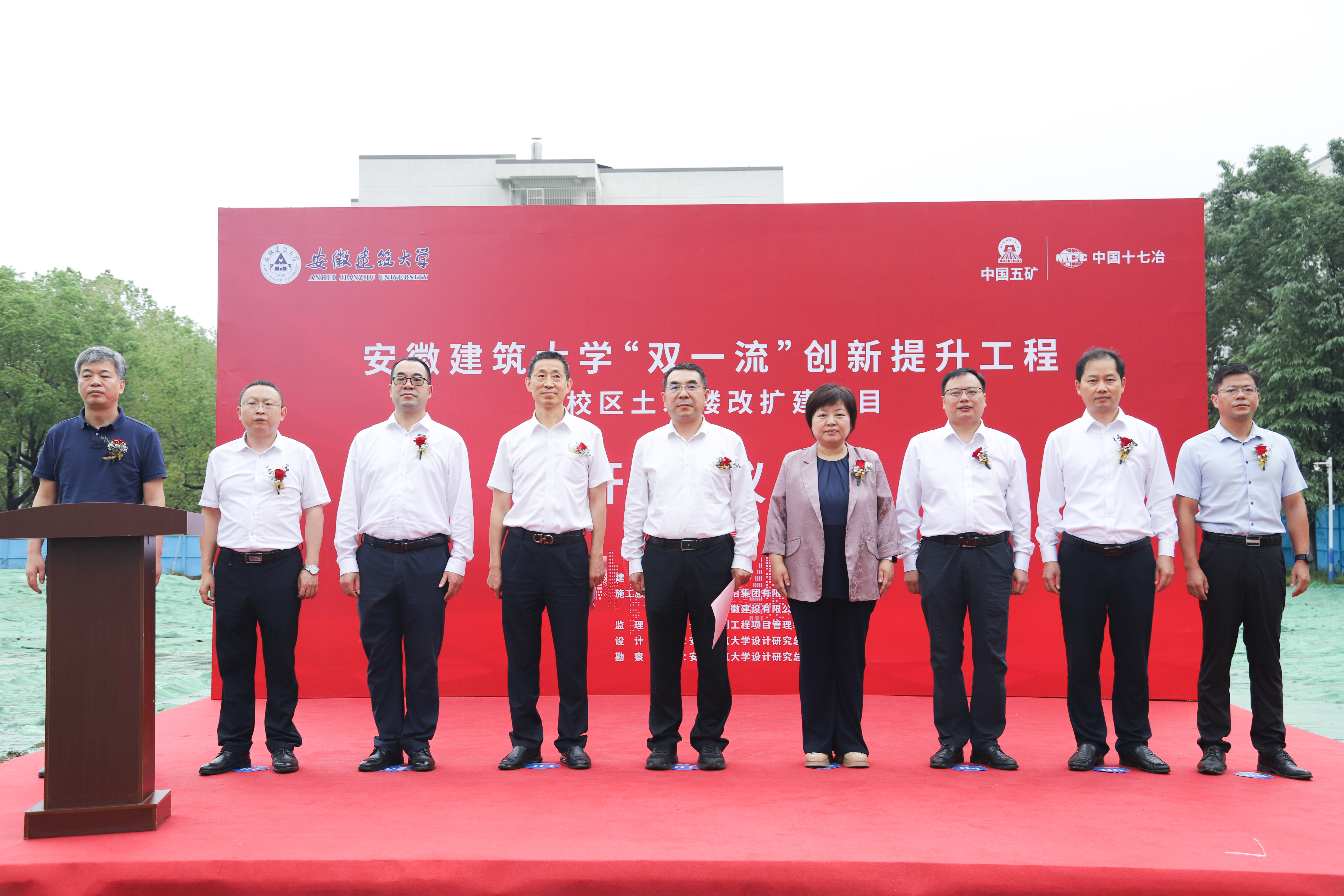 本网讯 9月30日上午8时58分,南校区土木楼改扩建项目暨高频双台阵地震模拟平台配套实验室开工仪式在项目工地隆重举行!校党委副书记、校长蔡国军,校党委常委、副校长李早,校党委常委、副校长杨科,校党委常委、副校长王佐才,校党委常委、纪委书记黄多能,beat365亚洲体育官方网站党委常委、副校长高跃峰,beat365亚洲体育官方网站设计研究总院有限公司总经理曹宏伟、安徽科创工程项目管理有限公司党委书记、总经理杨晓飞,中国十七冶集团有限公司党委委员、副总经理伍昌国,十七冶安徽建设有限公司总经理舒明、校办公室、发展规划处、国有资产管理处(基建办)、保卫处、土木工程学院、信息网络中心、后勤管理处等相关负责人共同出席本次开工仪式。