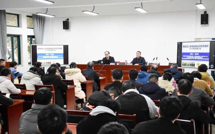 本网讯 1月18日,东南大学数学学院院长虞文武教授应邀来机电学院,作题为“智能无人系统的自主协同与博弈”学术报告。机电学院教师及研究生一百余人聆听了此次报告,报告会由校党委常委、副校长蔡国军教授主持。