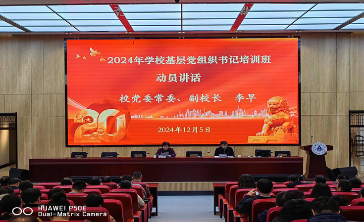 校党委常委、副校长李早出席开班式并作动员讲话,校党委常委,组织部部长吴运传主持开班式。李早指出:学校举办2024年度基层党组织书记培训班,深入学习贯彻习近平新时代中国特色社会主义思想和党的最新创新理论,推进落实省委巡视反馈问题整改和省委教育工委组织开展的党员发展问题专项治理工作,推动促进新时代党建质量创优和示范创建在学校基层党组织落实落地,非常必要,非常及时,非常有效。